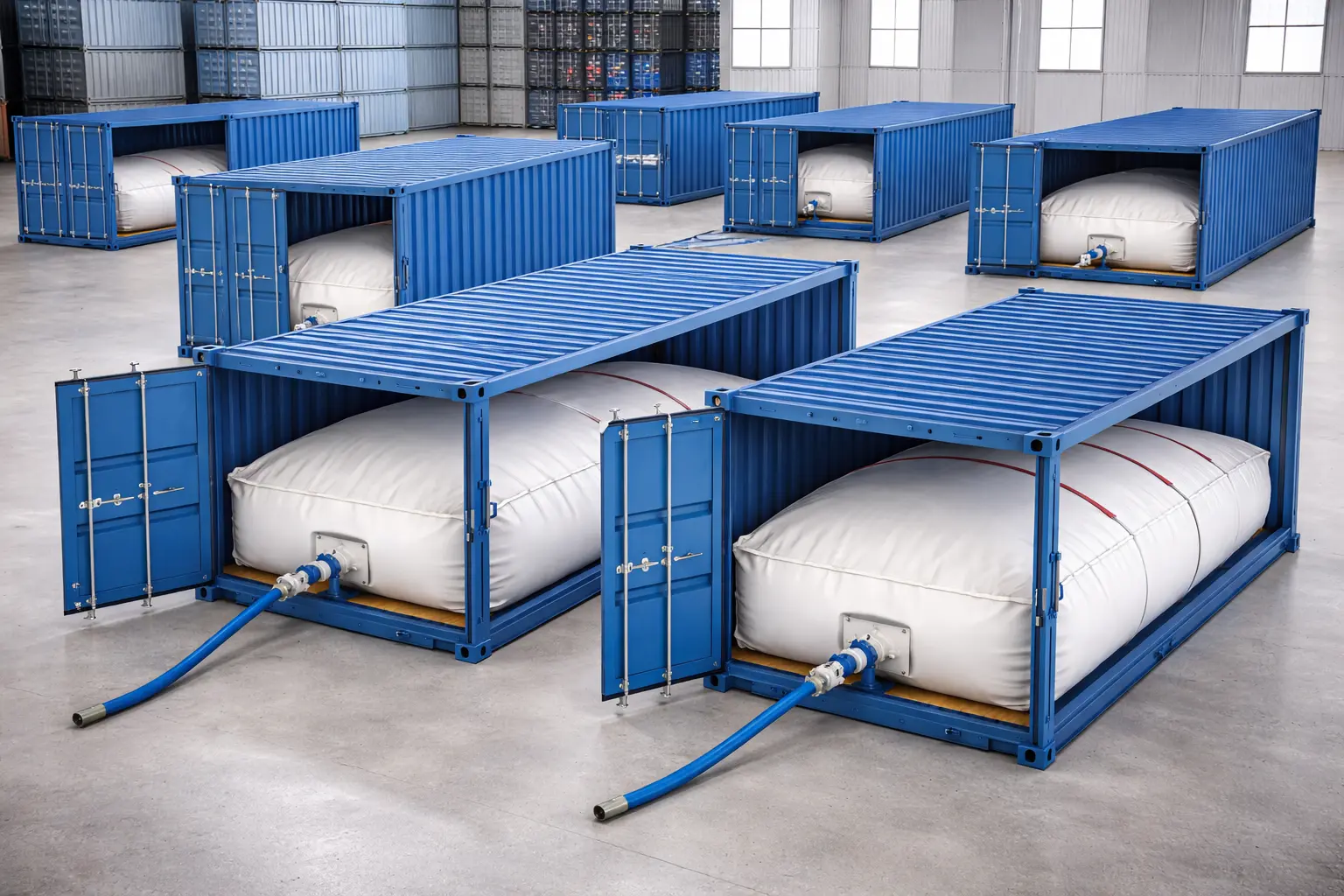 Efficient bulk liquid transport inside standard dry containers.